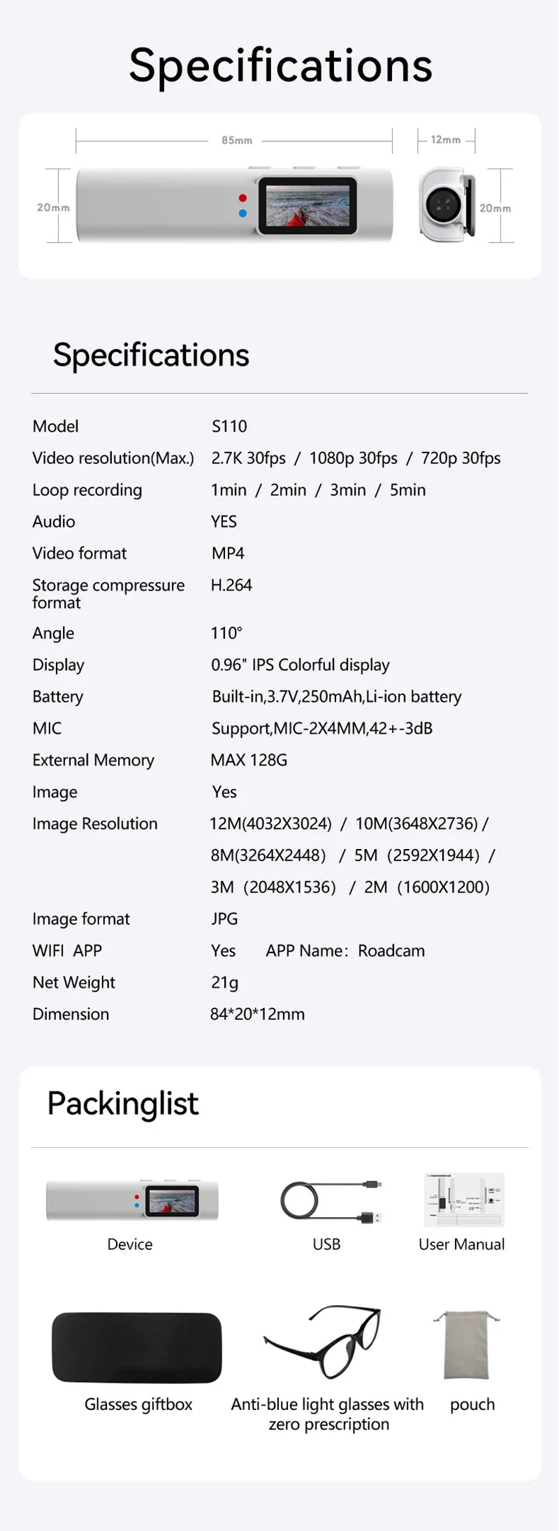 Model Number: Glasses sports camera