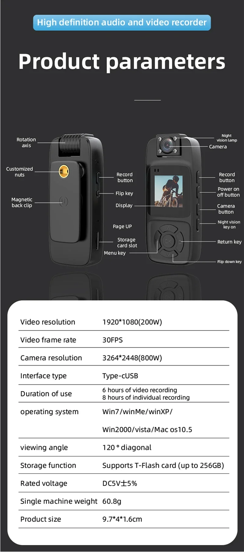 Xiaomi Mini WiFi Camera 4K HD Portable Digital Video Recorder Back Clip Police Body Cam Night Vision Sports Miniature Camcorder